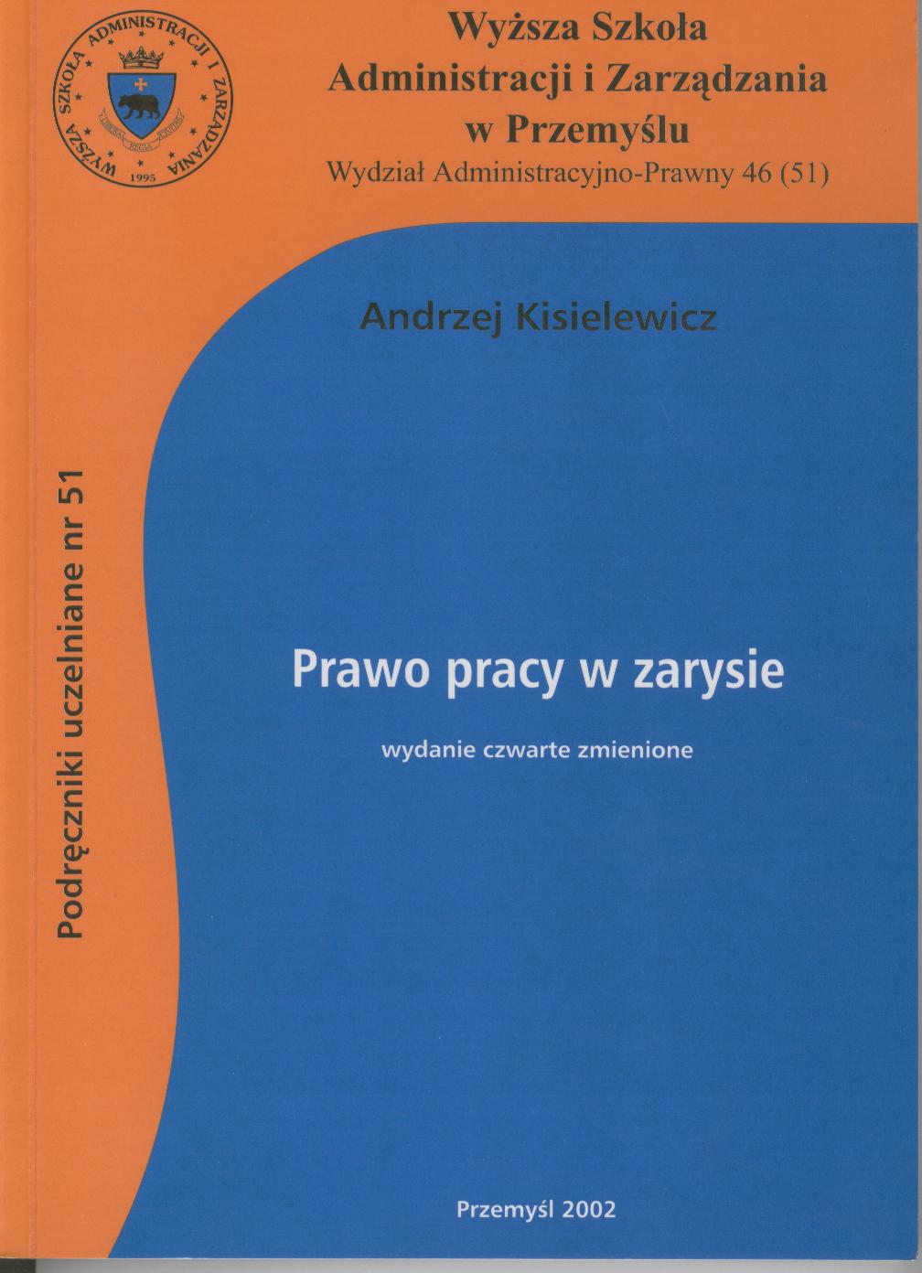 Prawo pracy w zarysie / Andrzej Kisielewicz ; Wydział Administracyjno-Prawny. - Wyd.4 zm., podręcznik uwzględnia stan prawny na styczeń 2002 r. - Przemyśl : WSAiZ, 2002. - 204 s. ; 24 cm.