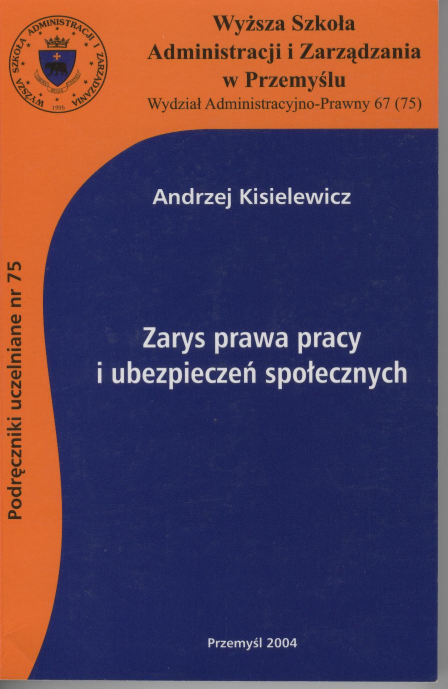 Zarys prawa pracy i ubezpieczeń społecznych / Andrzej Kisielewicz. - Stan prawny : styczeń 2004 r. - Przemyśl : WSAiZ, 2004. - 281s. : bibliogr. ; 24cm.