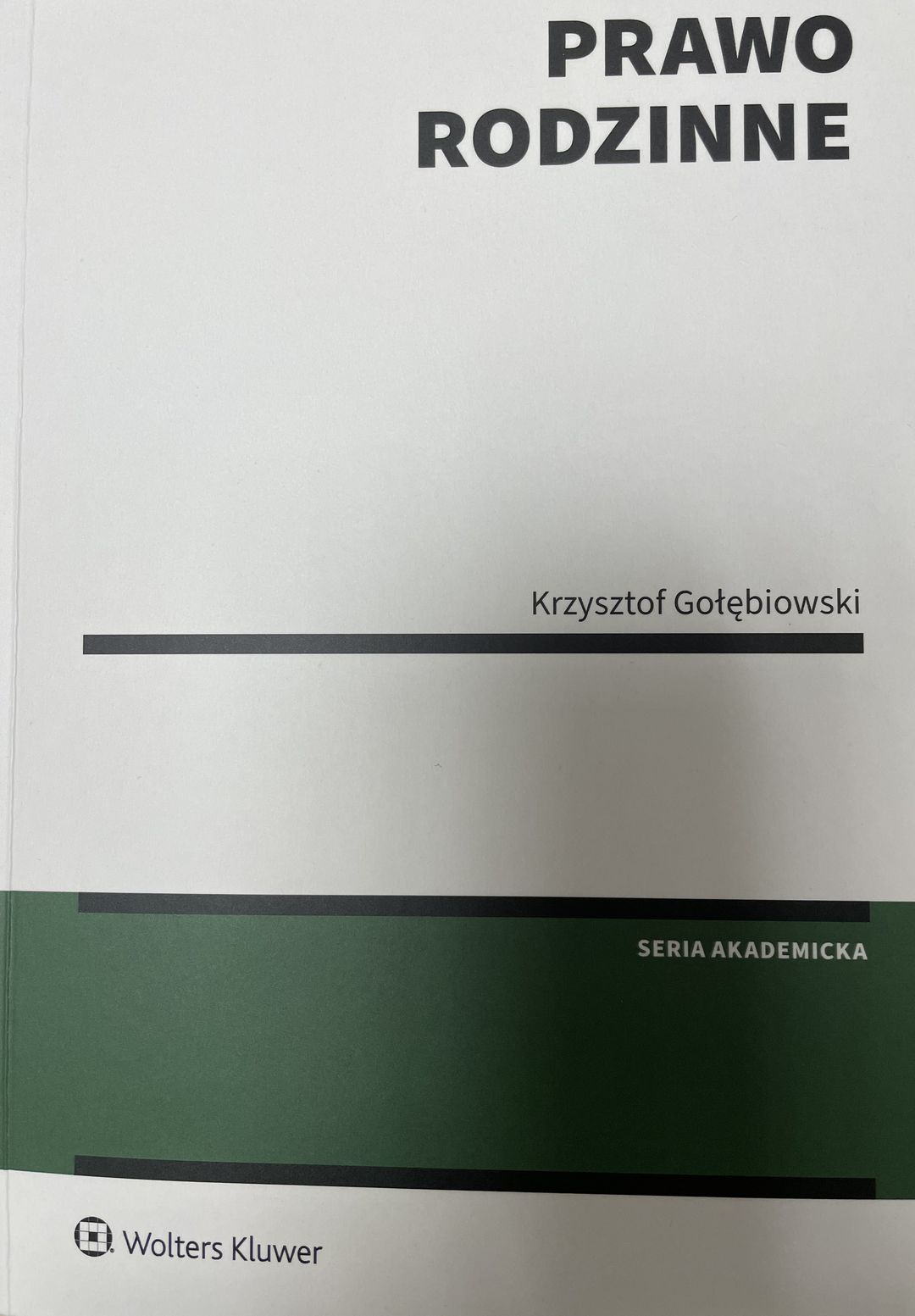 Prawo rodzinne / Krzysztof Gołębiowski. - Stan prawny na 1 września 2023 r. z uwzględnieniem zmiany wynikającej z ustawy z 28 lipca 2023 r. o zmianie ustawy - Kodeks cywilny i niektórych innych ustaw (Dz.U. poz. 1615), która wchodzi w życie 15 listopada 2023 r. - Warszawa : Wolters Kluwer, 2023. - 600 stron ; 21 cm.